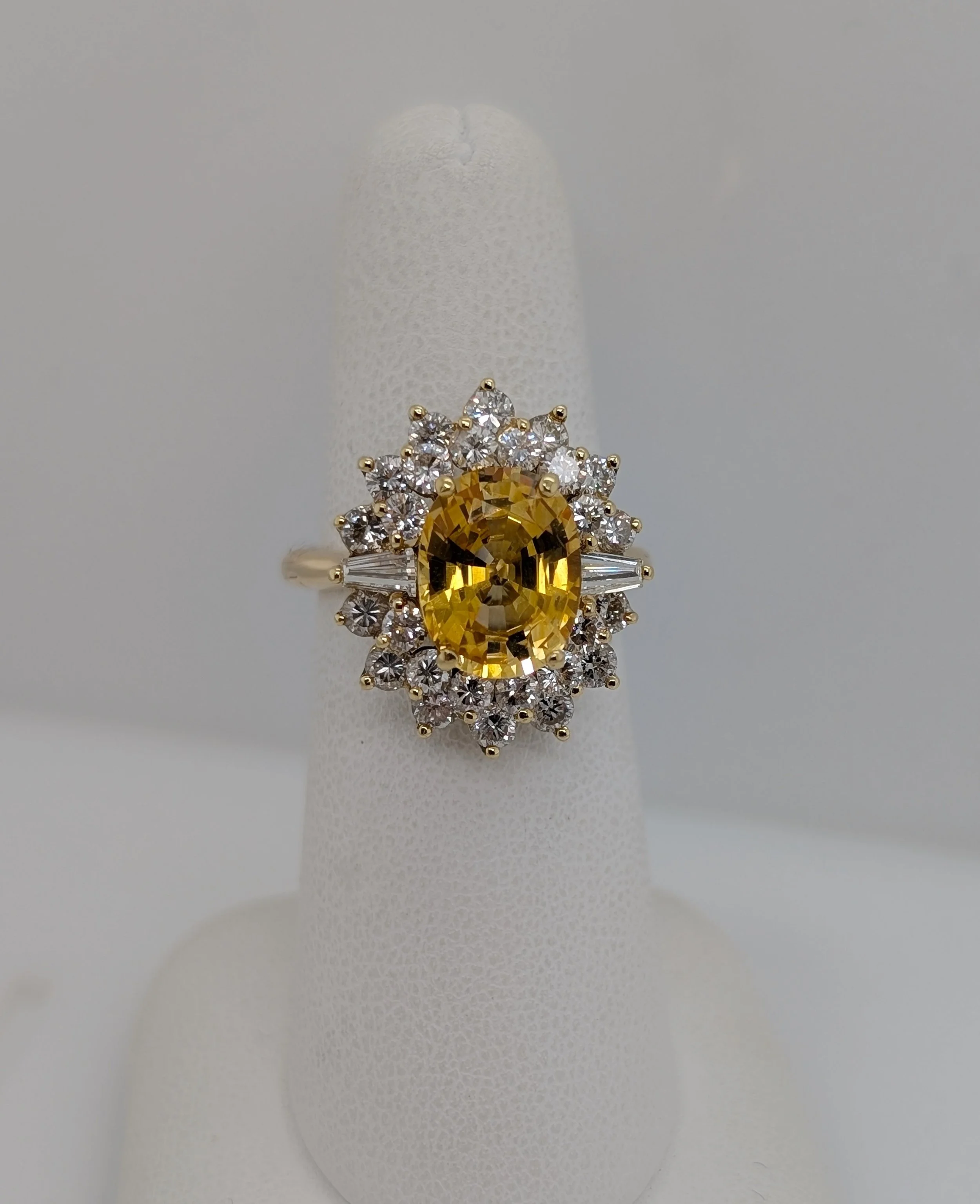 14k yellow gold untreated yellow sapphire ring with a diamond double halo. Size 6.25. (200-2094)